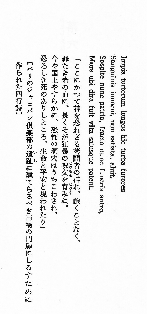 〔パリのジャコバン倶楽部の<ruby><rb>遺趾</rb><rp>(</rp><rt>いし</rt><rp>)</rp></ruby>に建てらるべき市場の門扉にしるすために作られた四行詩〕<br />