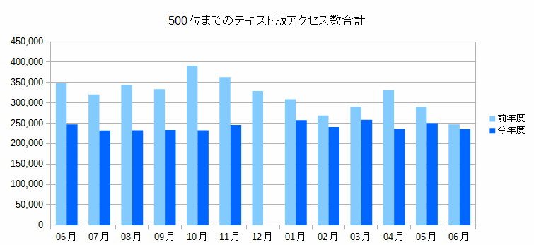 | テキスト版001位 | 5,679 | 5,748 | 6,556 | 5,984 | 5,418 | 5,241 |