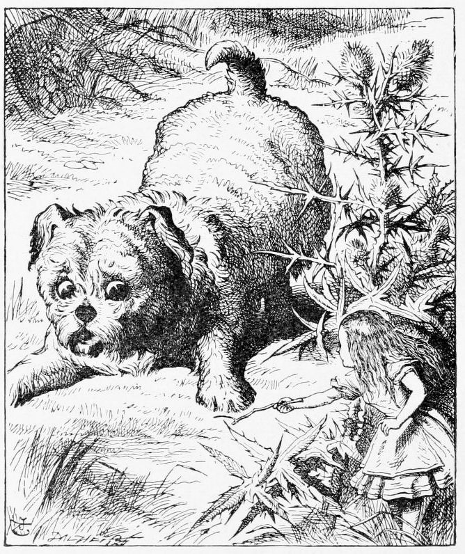 「ほら、そんなふうに泣いたってどうしようもなくてよ!」とアリスは自分に言い聞かせる。「あなた、今すぐにおやめなさい!」いつもご自分へのおいさめはとてもご